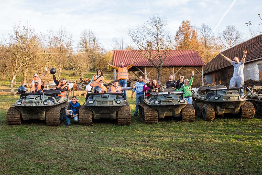 - sechipe diferite (în ATV-uri diferite) să se întâlnească la un puct fix după ce au urmat trasee diferite și au colectat baloane de diferite culori (plasate pe rutele preconfigurate)